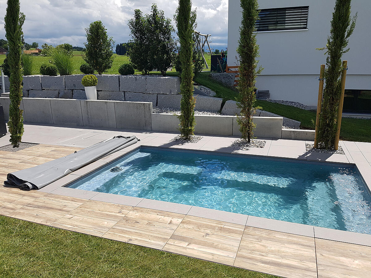 So wird ein Sommer-Sonntag zum Urlaubstag für die ganze Familie. Und ein lauer Sommerabend an Ihrem „Lago“ wird zum besten Ort für ein gutes Glas Wein – wenn dann noch die Poolbeleuchtung die Wasserbewegung reflektiert und eine unverwechselbare Stimmung über den ganzen Garten legt.