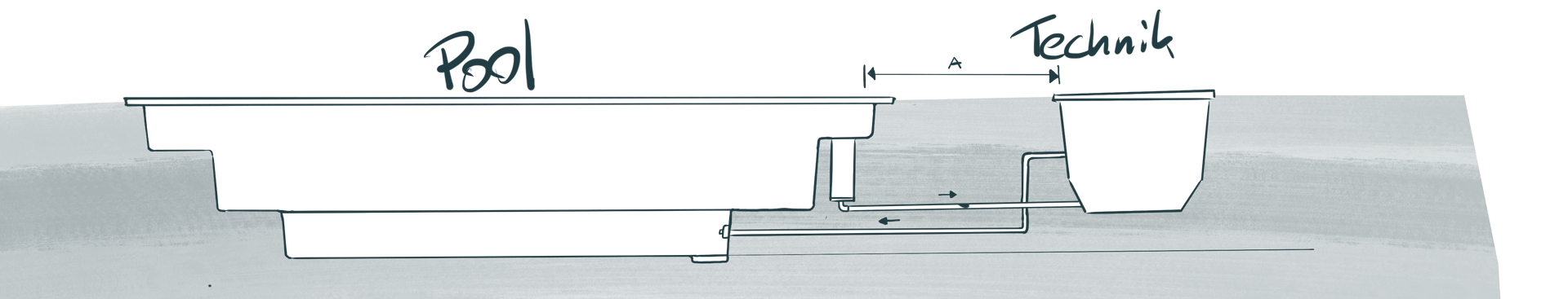 Nach der Anlieferung durch Ihren Installateur wird der Pool auf eine verdichtete und glatte Kiesschicht gesetzt und mit Styroporbeton oder Sand hinterfüllt. Die Pumpen sind im Technikschacht vorinstalliert. Der Schacht wird mit wenigen Leitungen zum Pool verbunden werden und muss immer unter dem Wasserniveau installiert werden. In wenigen Tagen ist Ihr CSIDE Pool badefertig.